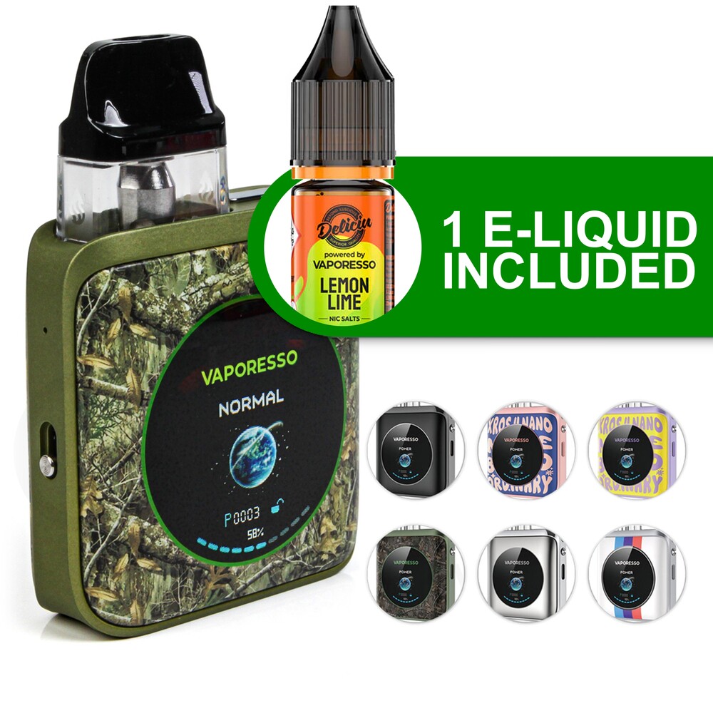 The Vaporesso Xros 4 Nano vape kit is an easy-to-use yet versatile option. An upgraded version of the Xros 3 Nano, and a smaller alternative to the Xros Pro, this pocket-friendly kit features a built-in 1350mAh battery that’s big enough to last most vapers all day. The 15 - 30W output range supports both MTL (Mouth To Lung) and RDTL (Restricted Direct To Lung) vaping, so it’s easy to switch up your inhale style. Two Xros pods and a bottle of Deliciu e-liquid are included, so you’ll have everything you need to get started!