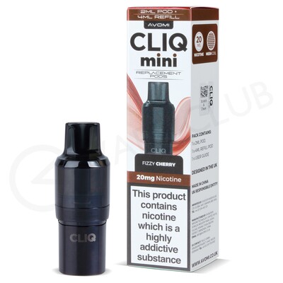 The Fizzy Cherry Avomi Cliq Mini refill pack mixes deep notes of punchy cherry on inhale with sparkling notes of sweet soda on exhale.
