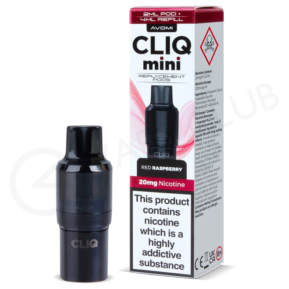 Avomi Cliq Mini refill packs are compatible with the Avomi Cliq Mini big puff vape. With a 2ml prefilled pod and a 4ml refill container, they can provide up to 3,000 puffs each before they need to be replaced. Designed for MTL (Mouth To Lung Vaping), they will produce a small amount of vapour for inhale that feels like a cigarette. Once the e-liquid runs out, just replace it with a new pack.