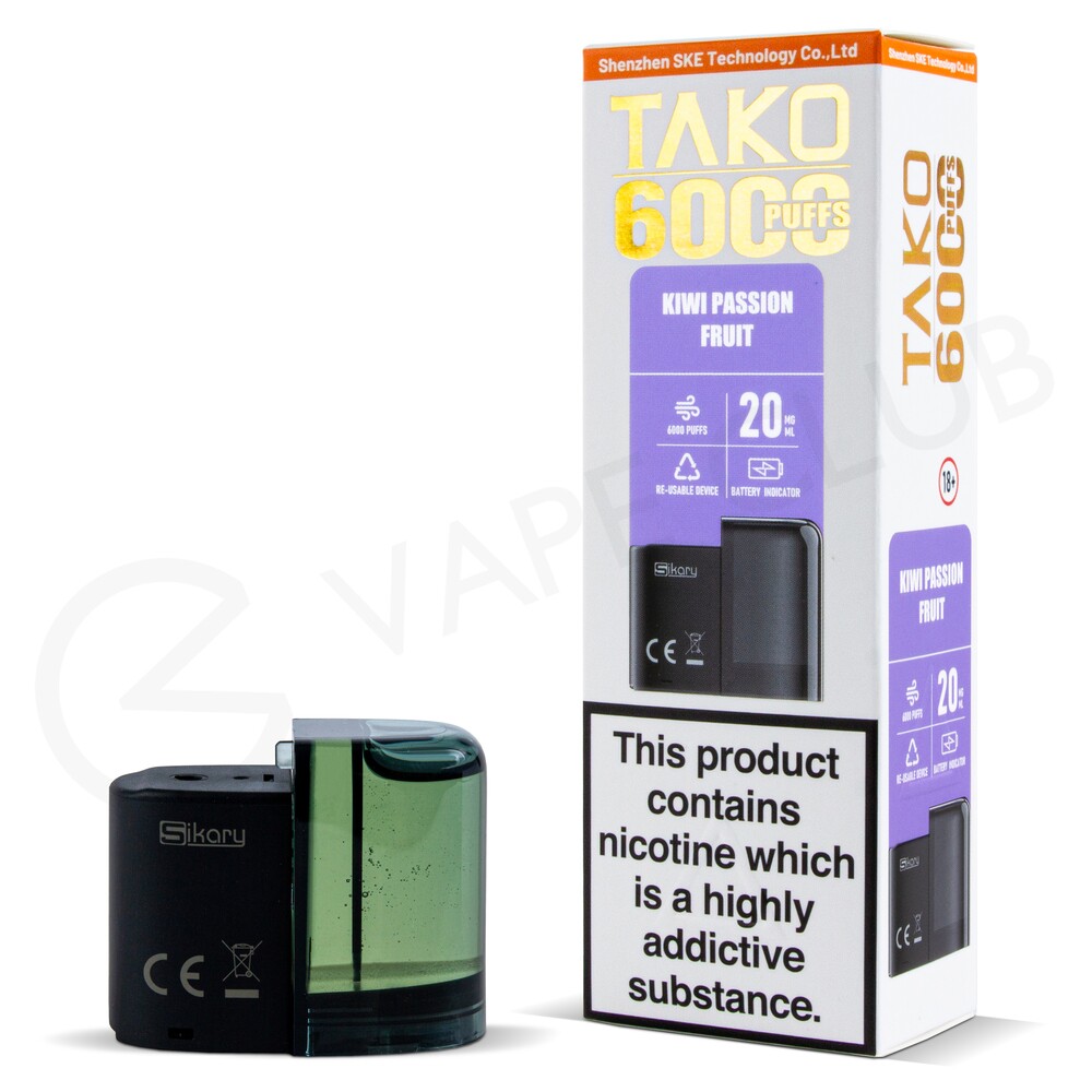 The Kiwi Passion Fruit Sikary Tako SP6000 refill pack provides a sweet inhale of passionfruit, sharpened by a tangy kiwi exhale for a balanced exotic fruit vape.